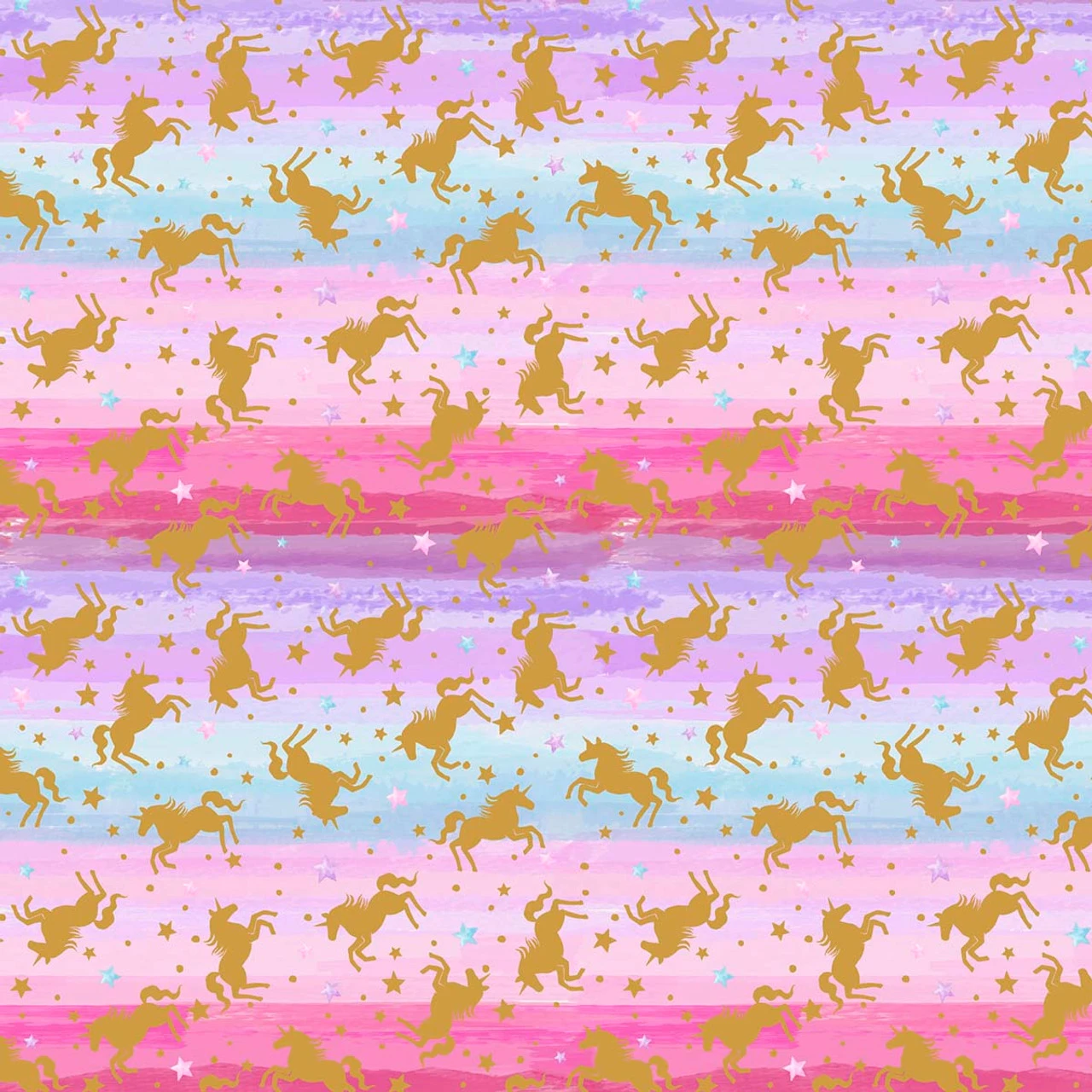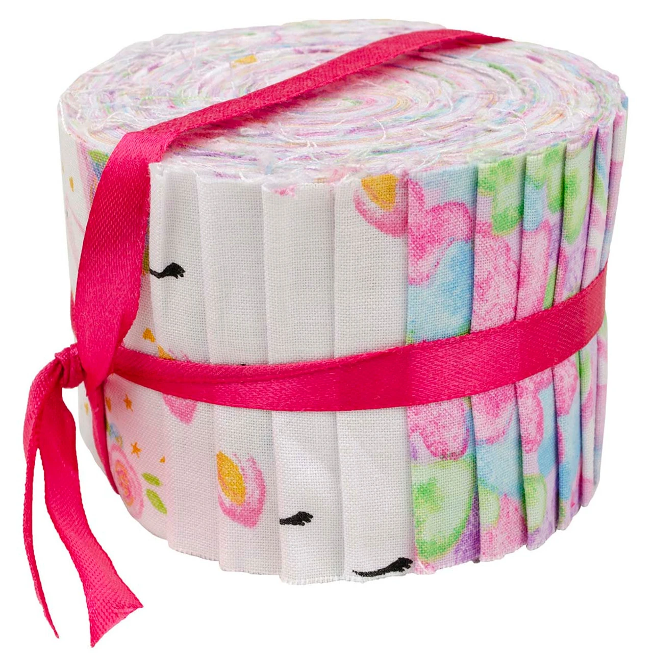 This pre-cut fabric strip roll features 5 whimsical prints with unicorns, hearts, and rainbows. The 100% cotton fabric is cut into fabric strips, each measuring 2½ x 42″ (6.4 x 107cm). The collection includes 20 strips (4 in each print). Imported.