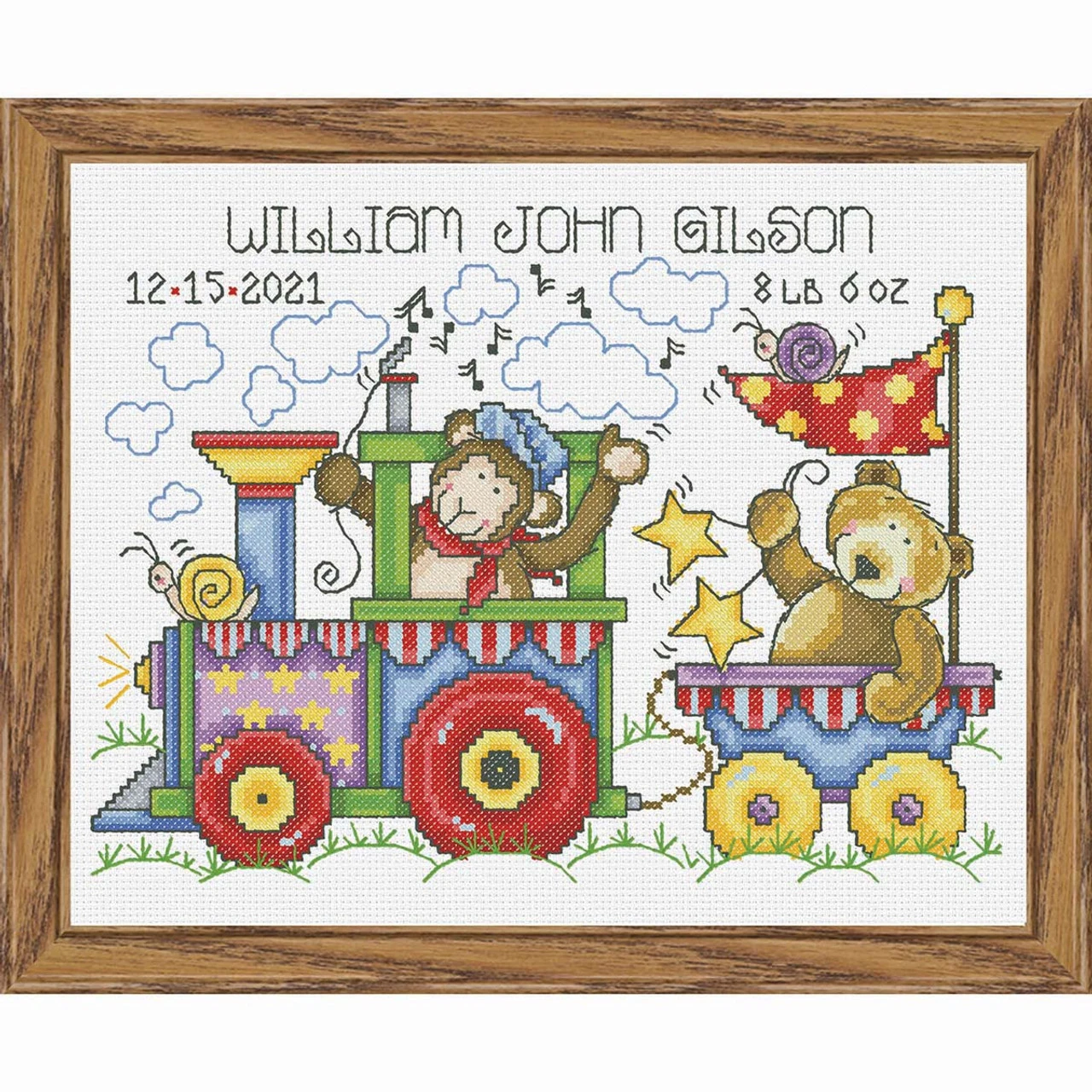 Herrschners Circus Train Birth Record Counted Cross-Stitch Kit