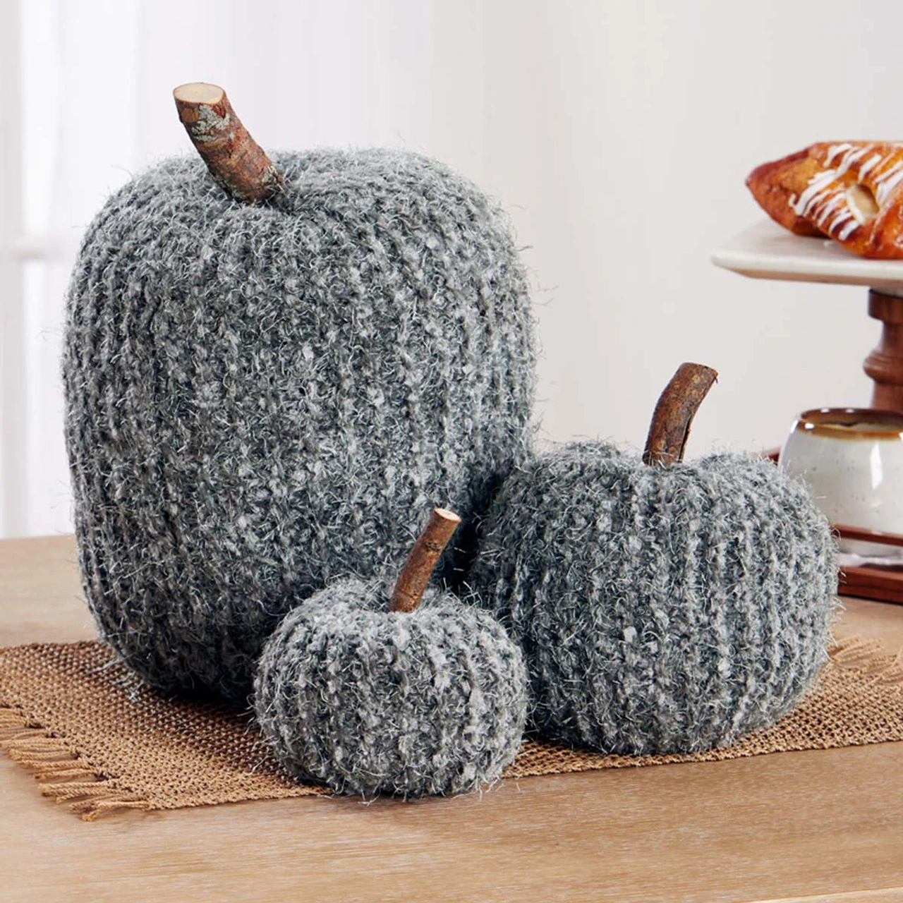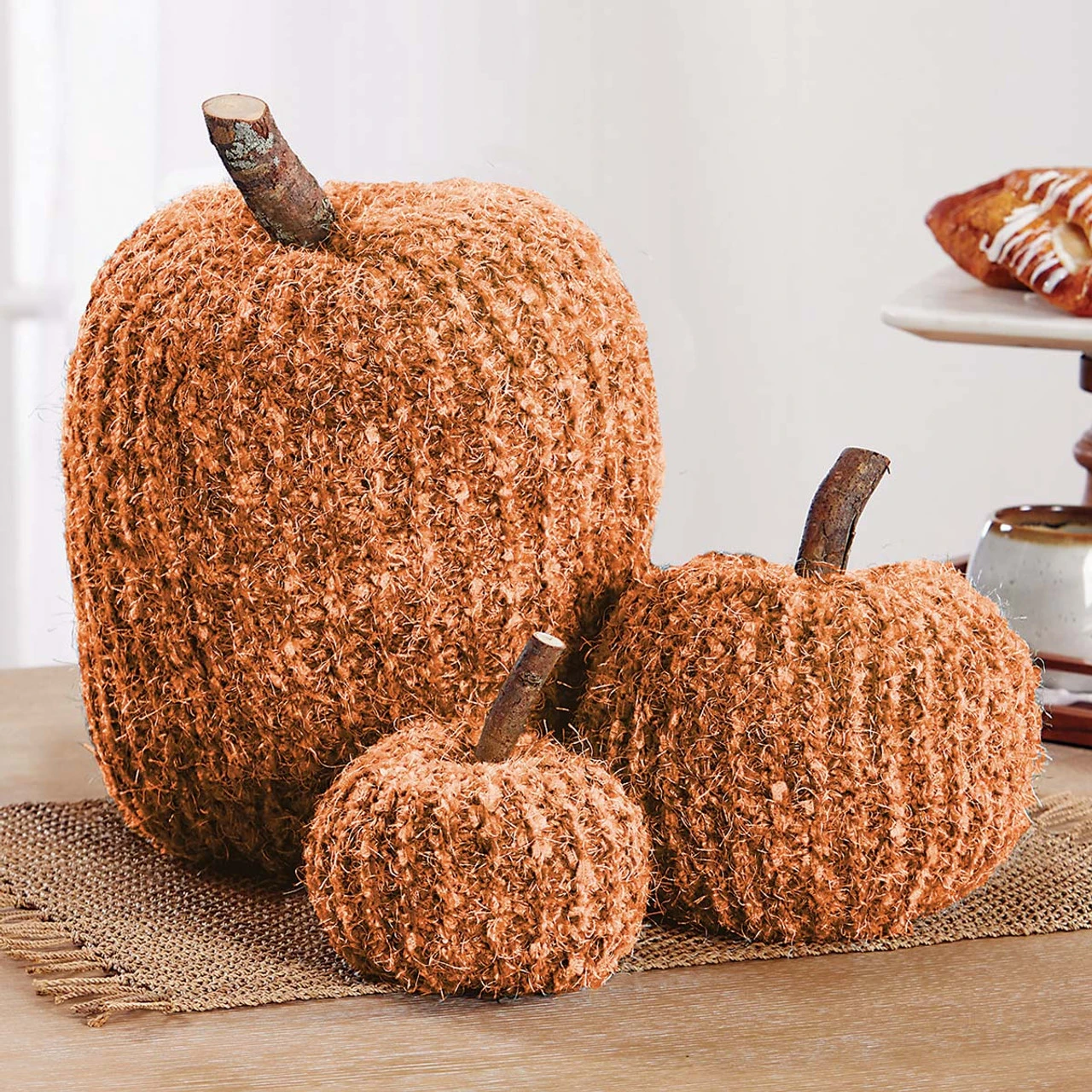 Personalize this trendy pumpkin patch to match your décor! This trio of easy knit pumpkins can be created in all colors of Department 71 Whimsical yarn. Choose your favorite color from the palette below (or pick more than one!) and create trendy fall pumpkins to match your décor. The slightly fuzzy texture of this blended yarn makes three chic and sophisticated pumpkins for fall decorating. Pumpkins measure up to 8 x 11″ (20.3 x 28cm) and require US size 11 (8mm) straight needles to complete (not included). Imported.