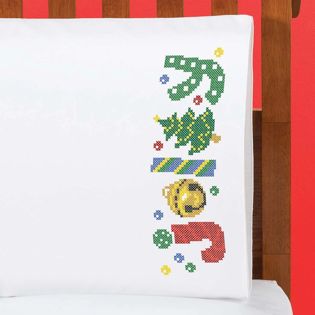 Herrschners Jolly Holiday Pillowcase Set Stamped Cross-Stitch