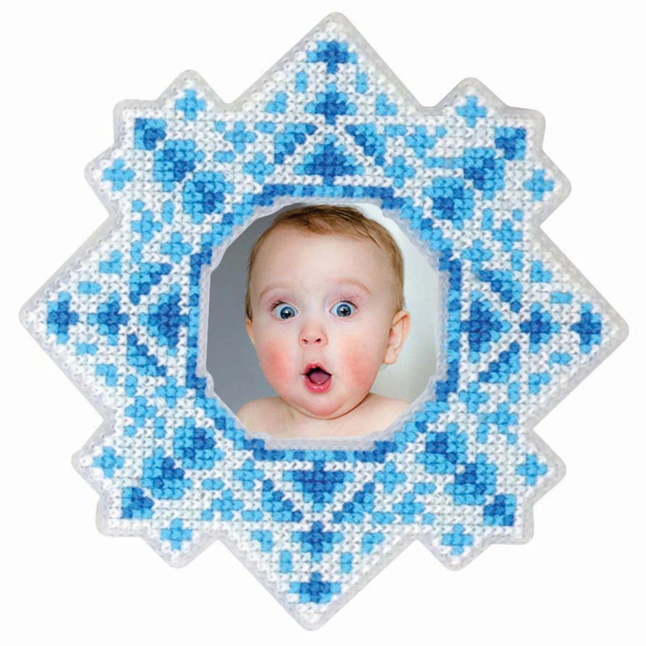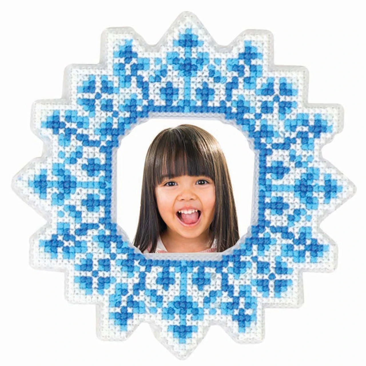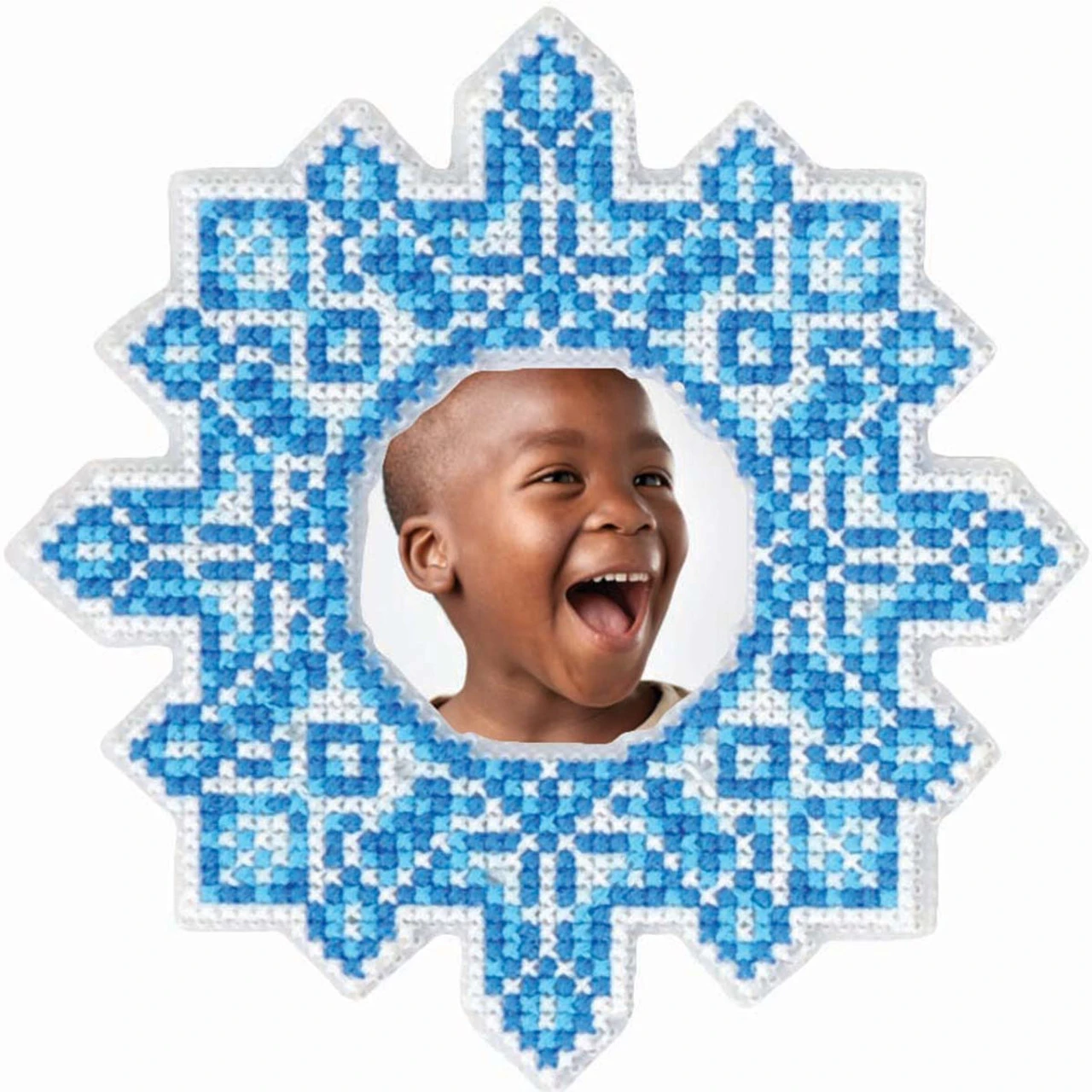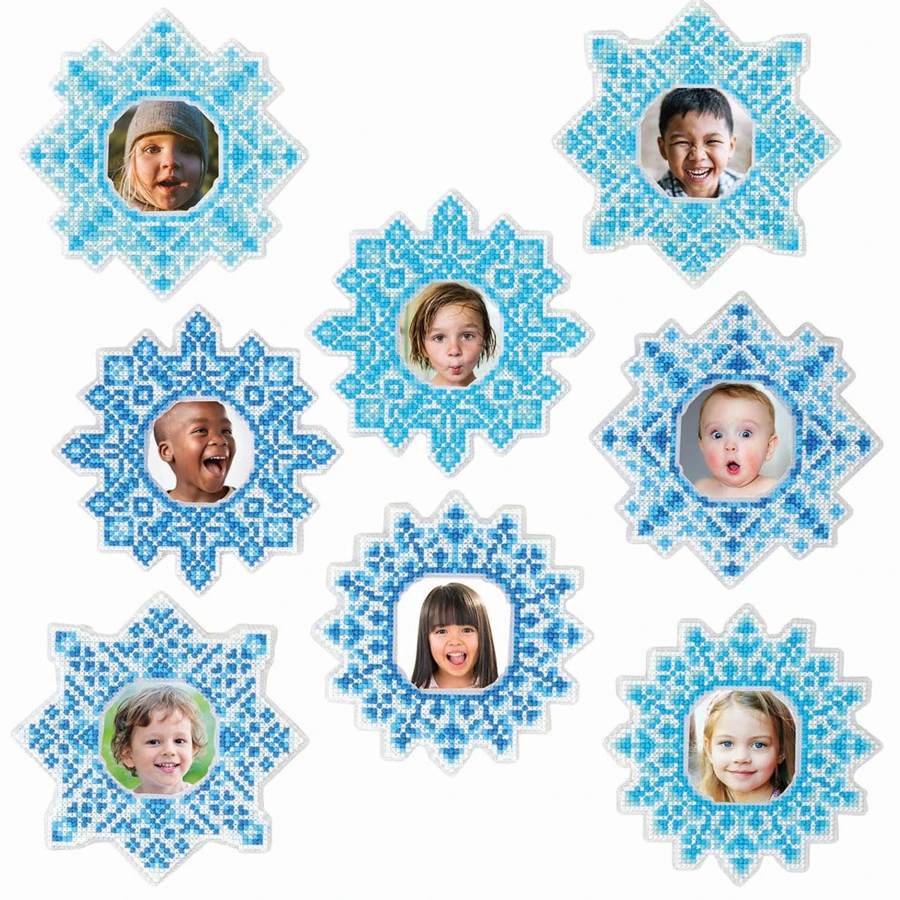 Create one-of-a-kind ornaments for your family’s Christmas tree with these fun plastic canvas photo frame designs! These mini designs make your family the star of your holiday décor with a flurry of miniature snowflake picture frames to personalize with your own photos. These designs are stitched on clear 14-ct. plastic canvas. This durable, stiff plastic is perforated with round holes for stitching and will not unravel like fabrics can. It is a great fabric choice for both beginning stitchers and those with more experience. This complete counted cross-stitch kit includes 14-ct. plastic canvas, cotton floss, floss organizer, needle, and instructions to create the 4 x 4″ (10.2 x 10.2cm) ornaments. Each festive design features an open area in the center to frame a family member’s photo. The designs would also work as fun gift tags! Simply insert the person’s photo instead of writing their name as a fun bonus gift! Photos shown are for example only. Imported.