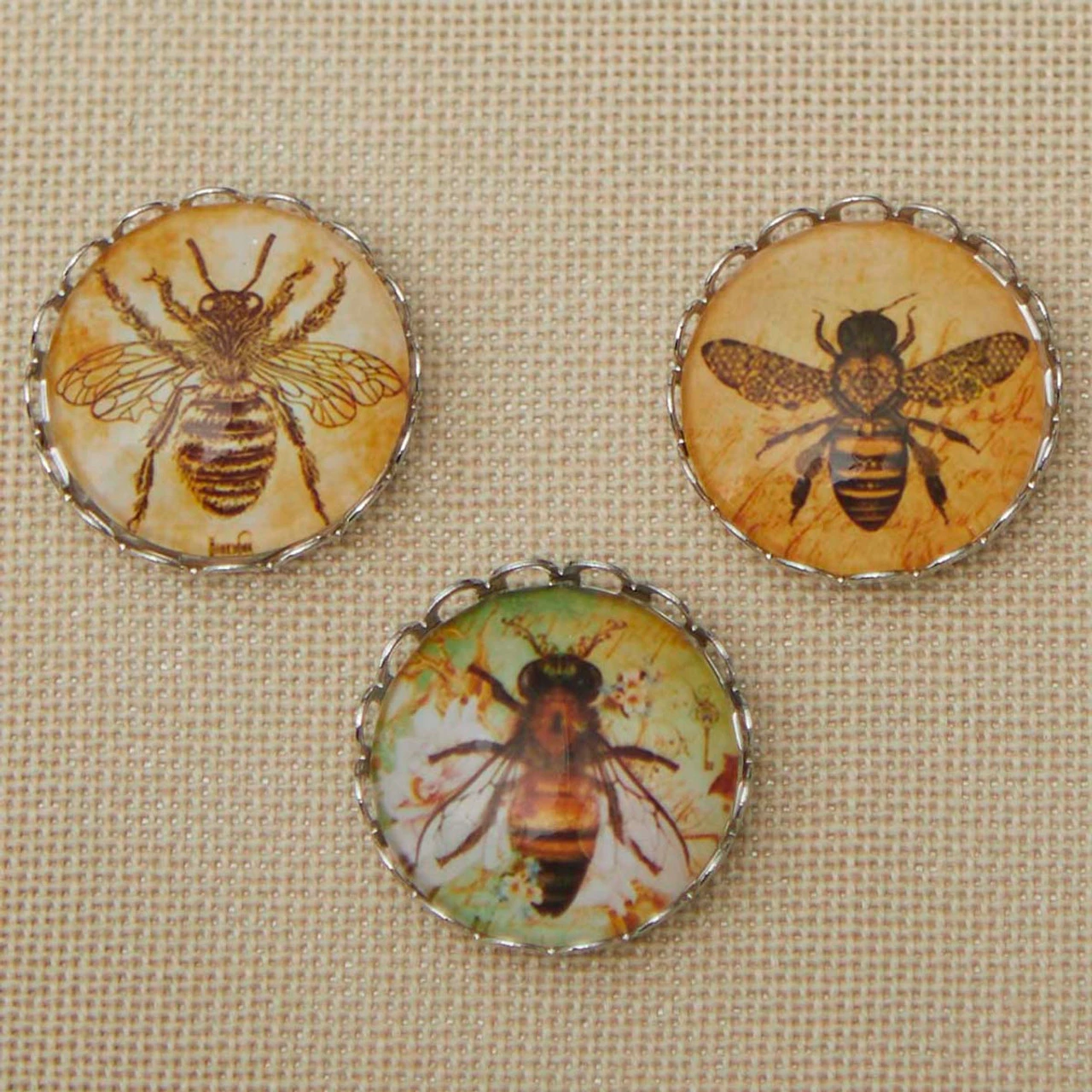 Never lose your needle again with these cute needle minders. These darling needle minders are decorated with busy little bees ready to buzz around your stitching space. The set makes great stocking stuffers for stitchers—or yourself! Each ¾” (2cm) needle minder has a metal frame and a strong backing magnet to securely hold your needle between stitching, preventing the needle from getting lost. Designs vary.
