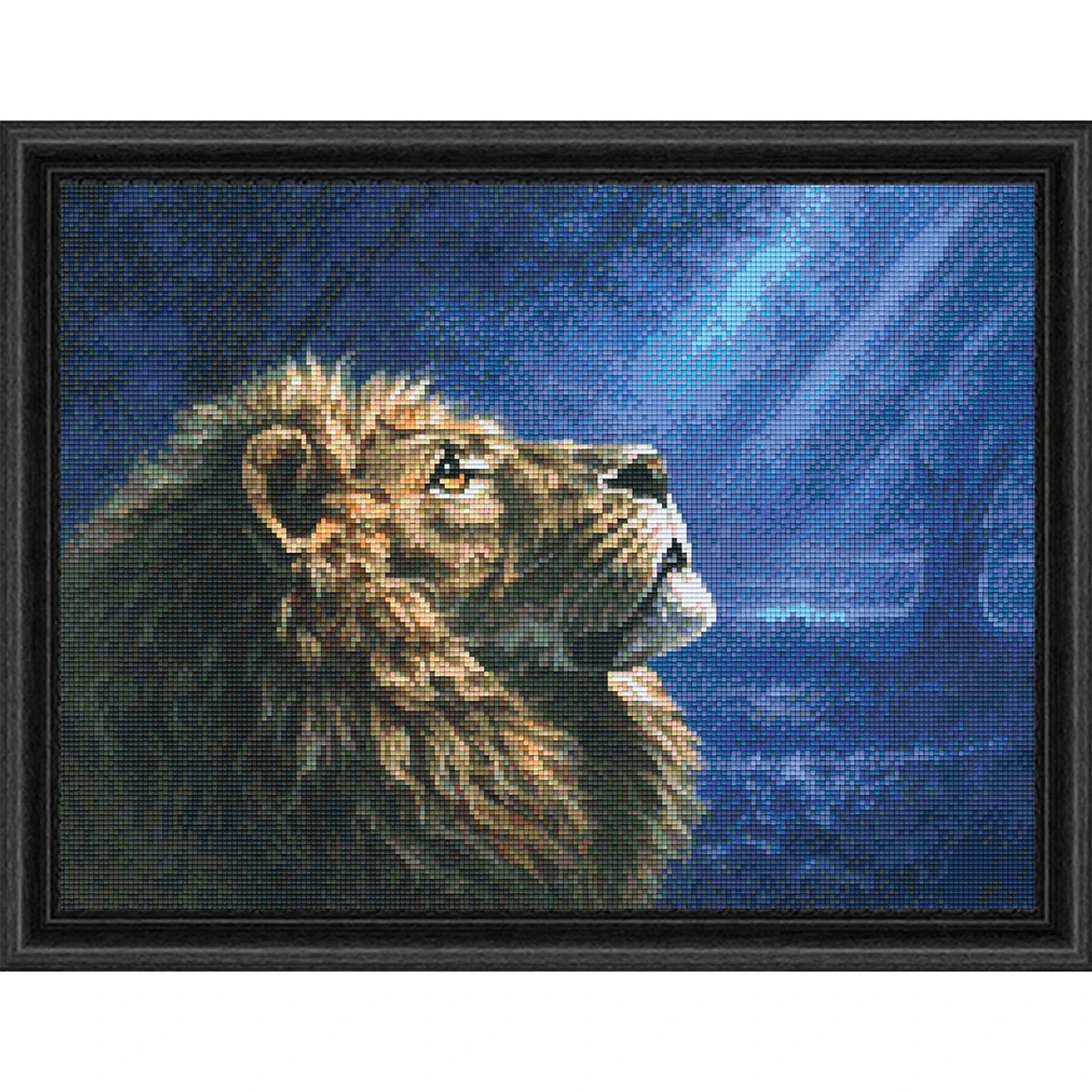 This highly detailed mosaic design features a humble lion gazing up into the moonlight in a beautiful portrait of faith and humility. This symbolic scene makes an inspirational addition to your wall art. Kit includes base plate, colored pixel squares (tiles), and instructions. Follow the instructions to arrange the tiles on the base plate and watch the image form piece by piece. Mosaic measures 20 x 15″ (51 x 38cm).