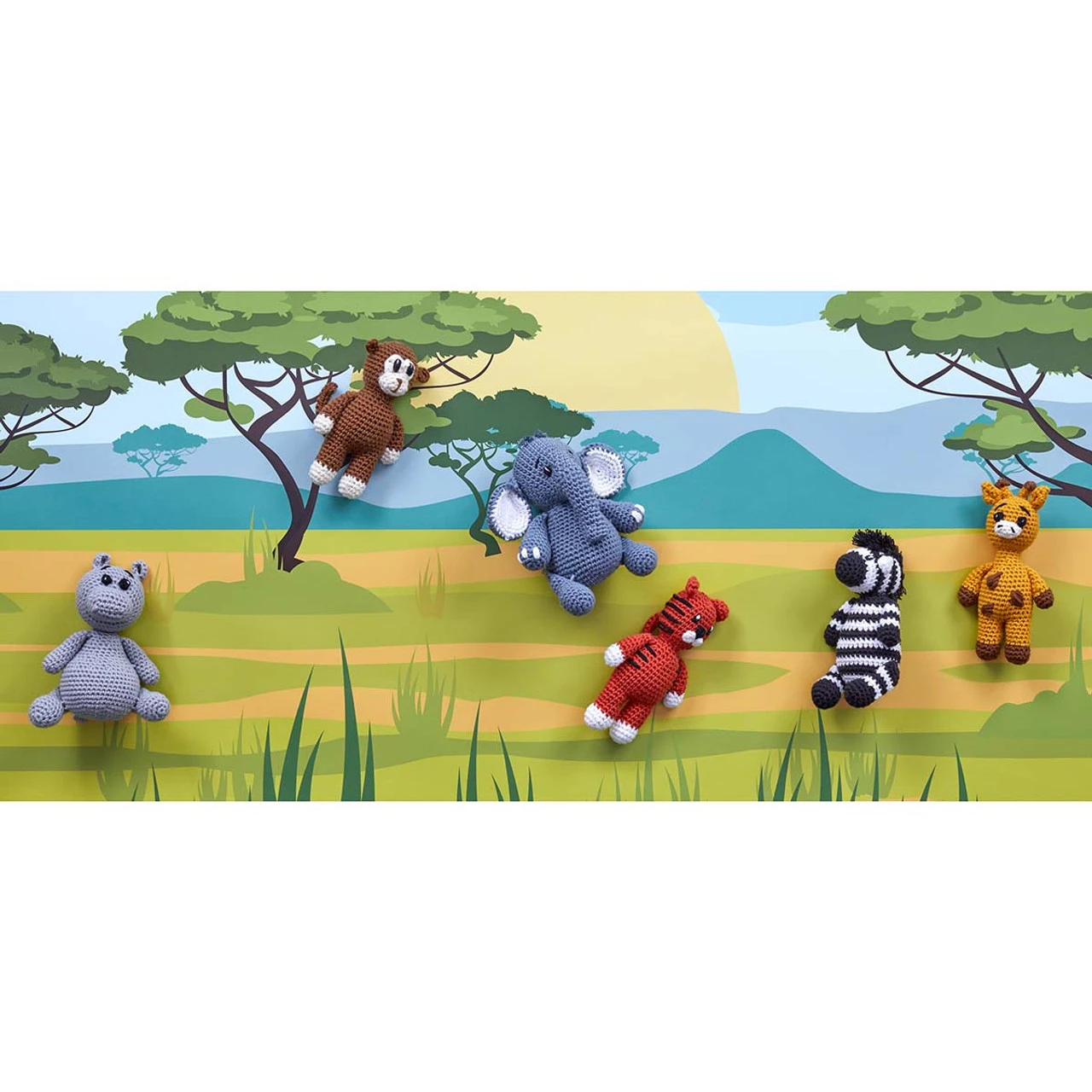 Take a safari adventure with these adorable amigurumi! This special Safari collection lets you tell a story through crochet with as you create six amigurumi designs stitched in Premier Minikins yarn. The cute collection includes an elephant, giraffe, hippo, monkey, tiger, and zebra. This amigurumi kit includes the yarn and intermediate crochet instructions. The finished designs measure up to 6″ (15.2cm) tall. Requires a US size B-1 (2.25mm) hook to complete (not included). Imported.